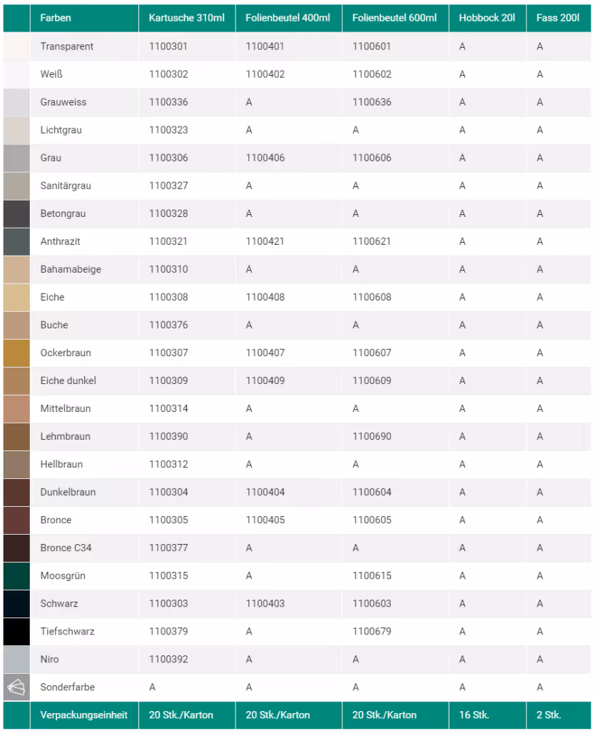 Svojstvo: postojan na UV zračenje, postojan na vremenske uvjete i starenje sa širokim spektrom površina za prianjanje, sadrži fungicid
